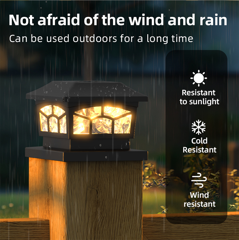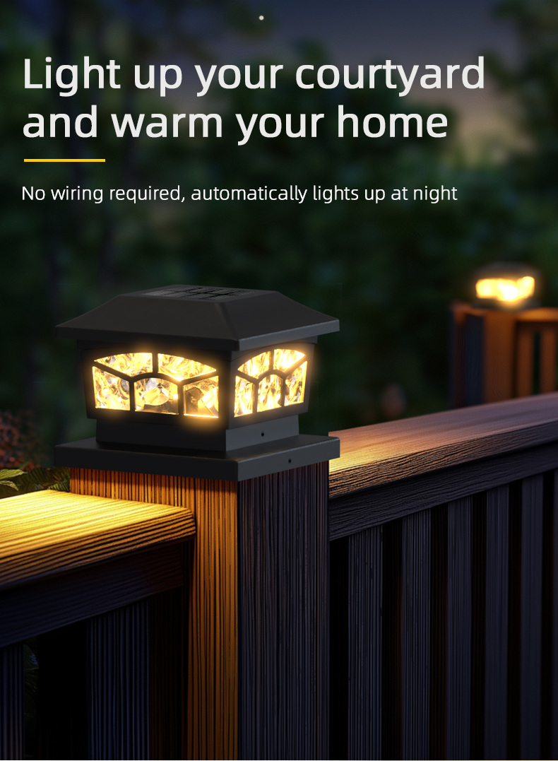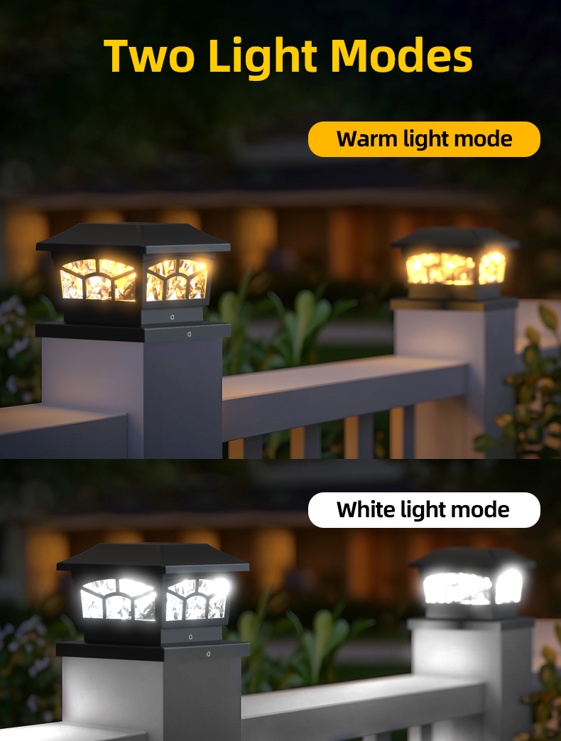 Ipakita ang mga eksena ng aming 8 LED solar post cap light panlabas na hindi tinatagusan ng tubig na ilaw: