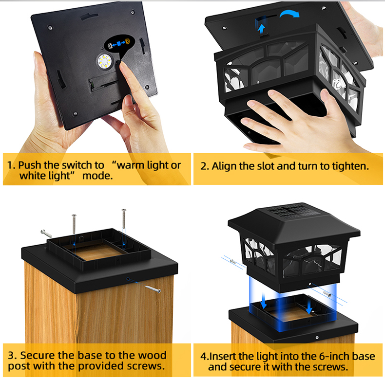 Ang mga detalye ng aming Dual Mode Solar Post Cap Light Solar Garden Light:
